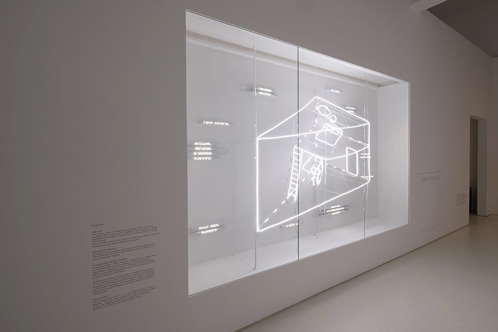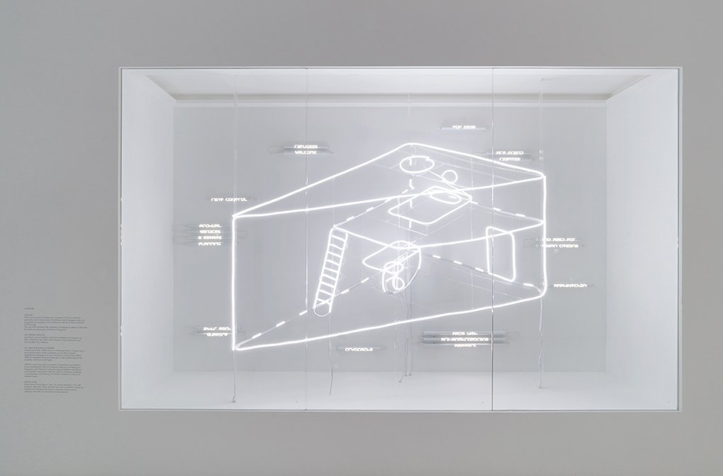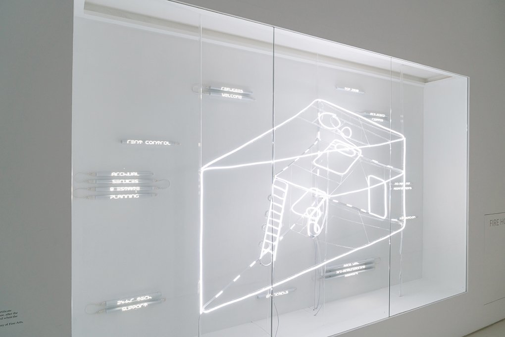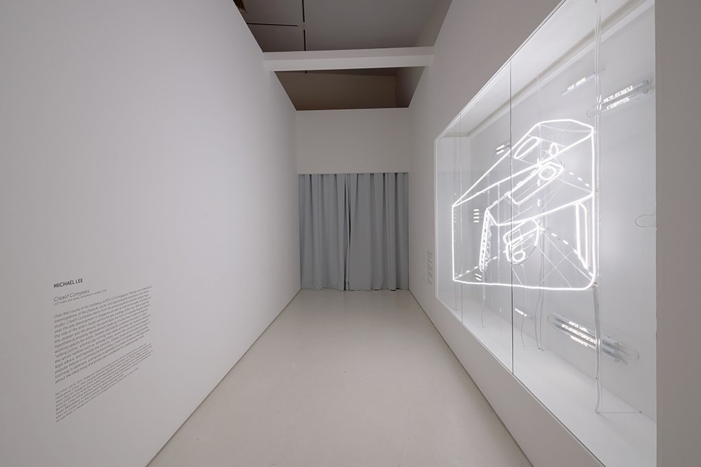 Developed during his residency at NTU CCA Singapore, Creatif Compleks (2018) is the culmination of Michael Lee’s reflection on the function of the artist’s studio within the arts ecology of a city. The work takes the form of a diagram about a hypothetical property development consisting of various configurations of the artist’s home/studio. The use of LED light strips, a popular fixture in advertising and interior design, alludes to latent apprehensions about the development and promotion of the arts in Singapore which today are, arguably, at a feverish pitch. Informed by myths and fantasies of artists in their studios, the work takes a speculative leap into the utopian and the absurd.
