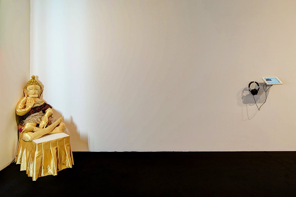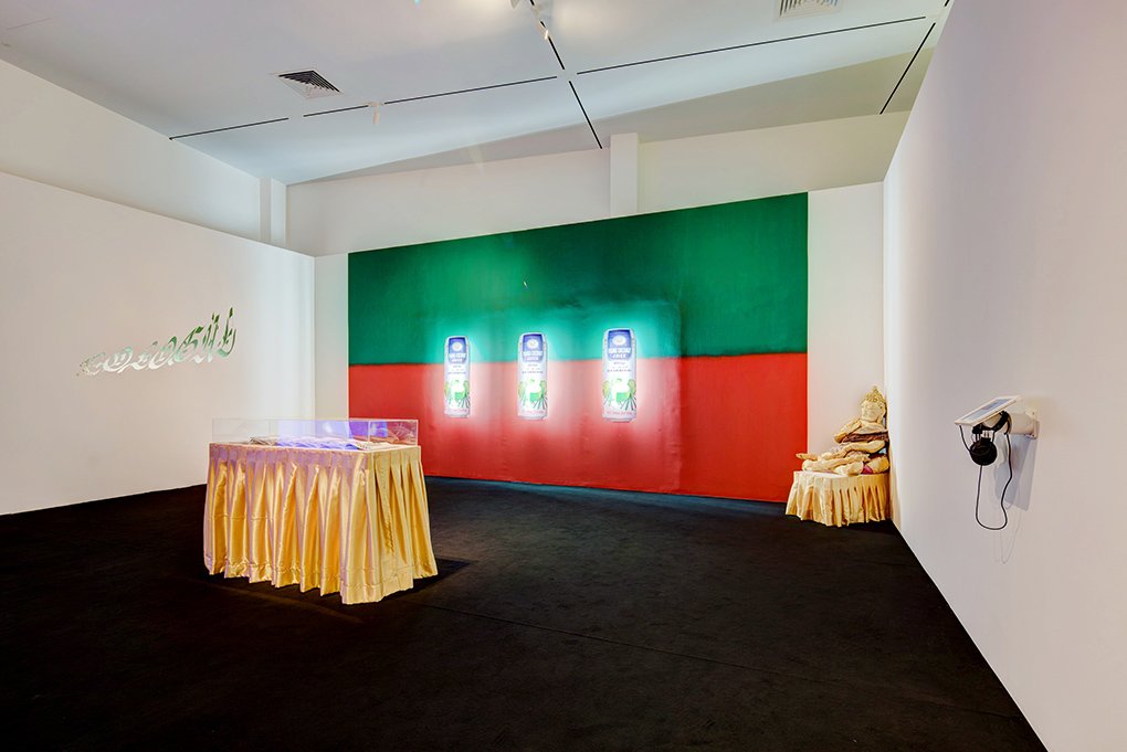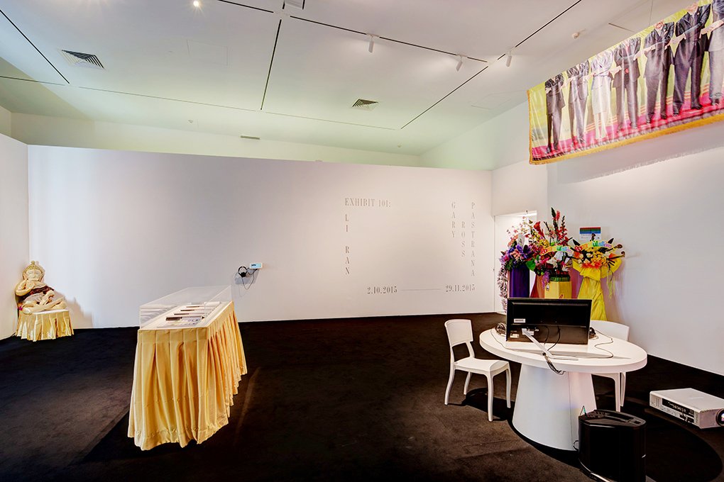 Gary Ross Pastrana’s An ASEAN Exhibition 1 creates an artistic gesture around the idea of Southeast Asia as a reference with no visual referent. The artist engaged DSM Solutions, a young Singaporean creative collective, to stage a “Contemporary Southeast Asia Art Exhibition-Themed Event” and prototype props that could stand in for Southeast Asian artworks. In this manner, the artist has effectively outsourced the sometimes-problematic task of representing Southeast Asia, an implied obligation of artists invited to regionally themed group exhibitions within the region.
