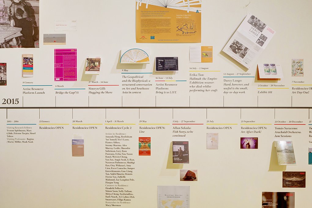 The Making of an Institution captures different moments in the development of the NTU Centre for Contemporary Art Singapore (NTU CCA Singapore) connecting artistic projects, discursive manifestations, and the institutional apparatus in a seamless display. It looks back into its young past in order to shape its future. Challenging the format of an exhibition, The Making of an Institution creates a communal space where projects and research explorations by the Centre’s Artists-, Curators-in- Residence, and Research Fellows coexist with ongoing series of talks, screenings, performances, and workshops. The project engages the Centre’s main pillars–Exhibitions, Residencies, Research and Academic Education – bringing to a close the overarching curatorial narrative Place.Labour.Capital. that served as a framework for its activities since 2013.