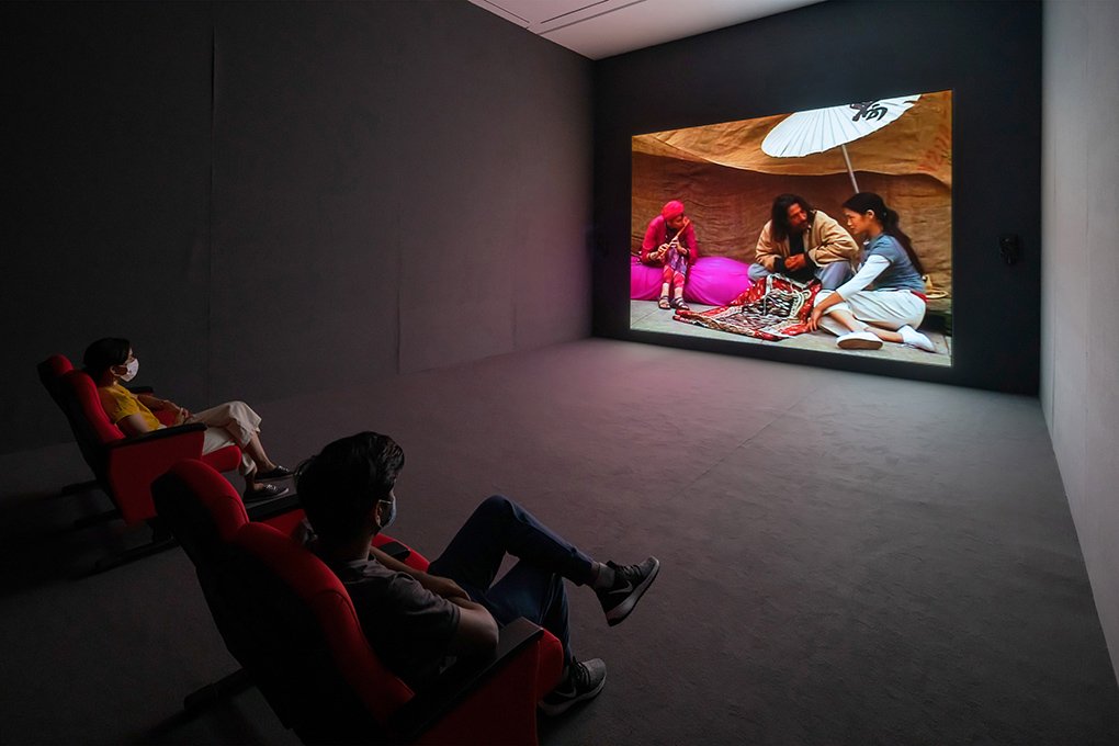Trinh T. Minh-ha. Films. is the first institutional exhibition of filmmaker, music composer, writer, anthropologist, feminist and postcolonial theorist Trinh T. Minh-ha in Asia, presented in an exhibition format. Five of her films—Forgetting Vietnam (2015), Night Passage (2004), The Fourth Dimension (2001), A Tale of Love (1995) and Shoot for the Contents (1991), filmed over a quarter of a century, in different parts of Asia—are simultaneously on view in five small-scale movie theatres in The Exhibition Hall. As the viewer wanders from one theatre to the next, the proximity of the films enables their narratives to interrelate. This spatial configuration took its point of departure from Trinh’s exhibition at the Secession, Vienna, in 2001.