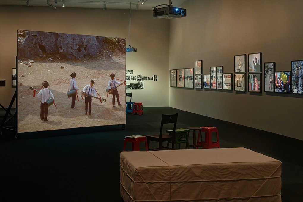 Starting with China. The Arts – The People (1985), the exhibition leads a journey through the cultures and geographies of China, while also exploring the relationship between moving image and still life. The three acts of the documentary are presented on a three-screen installation, documenting everyday life in Beijing (February 1985), Sichuan Province (March 1985), and Yunnan Province (March 1985). While meeting the film director Ling Zifeng in one chapter, a Bamboo factory is visited in another, and in parallel the Sani people, a minority group, show their habitat, the Stone Forest.