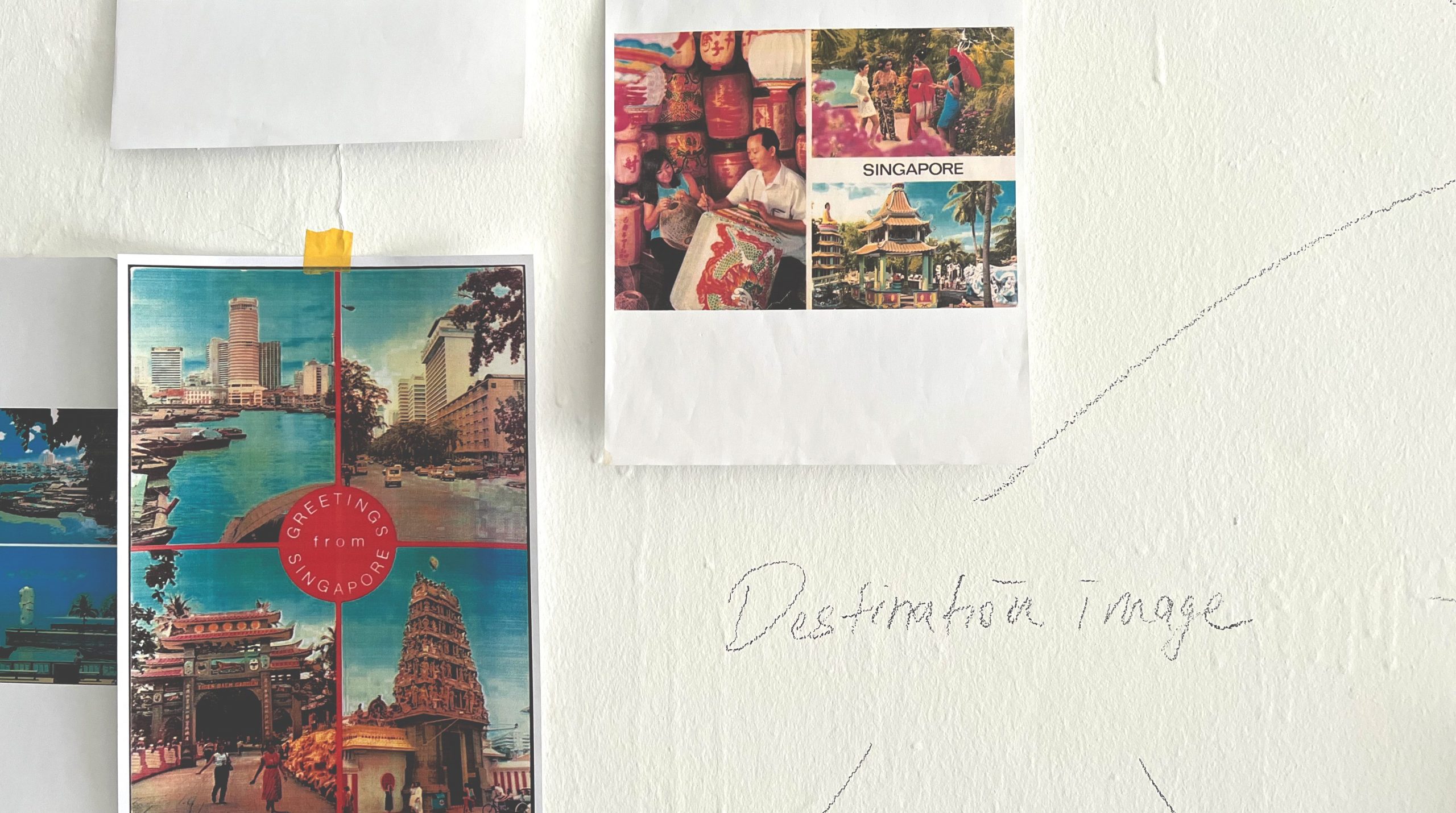 For the past five months, Hilmi Johandi has transformed his studio into a sanctuary for alternative patterns of thought outside of the usual routines and rituals that define his practice. Visitors will step into a mind map of sprawling ideas, key words, and visual inspirations that come from old films, tourism postcards, and photographs depicting a long-gone Singapore. Next to this explorative mind map, this open studio session also shows how Hilmi’s experiments with form and modes of spectatorship have led him towards stop-motion video expanding his image-making process beyond painting.
